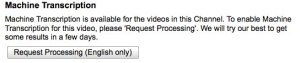 - Instruct Youtube to transcribe your video, then wait about an hour.